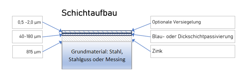 - Die Zinkschichten sind durch spezielle Nachbehandlung verschiedenartig behandelbar, beispielsweise Passivieren, Phosphatieren, Lackieren, Vulkanisieren, Einfärben und Versiegeln